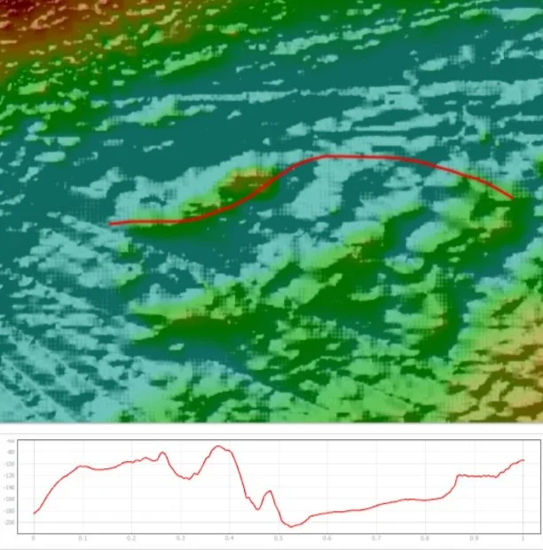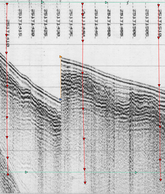 Using digitized seismic images we can trace sea-floor horizons and other chosen features. Horizons and seismic navigation can be exported in GIS compatible file formats.